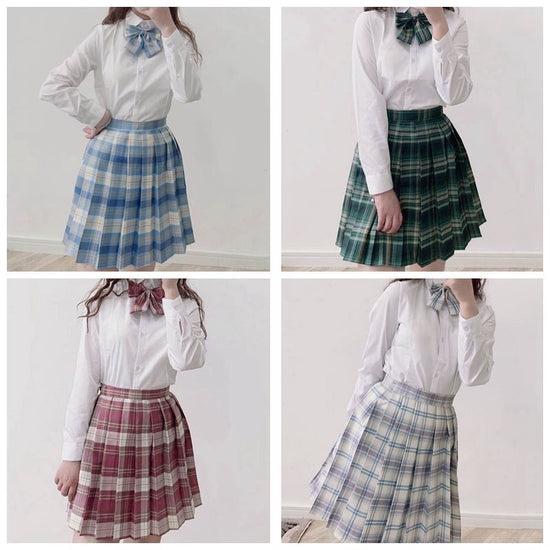 Dark-Style Plaid Pleated Skirt with Matching Bow