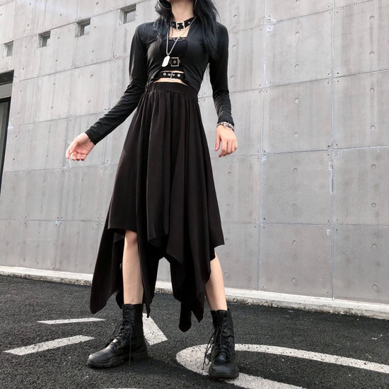 Eclipsed Edge Asymmetrical Midi Skirt