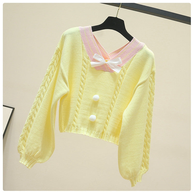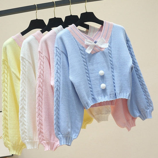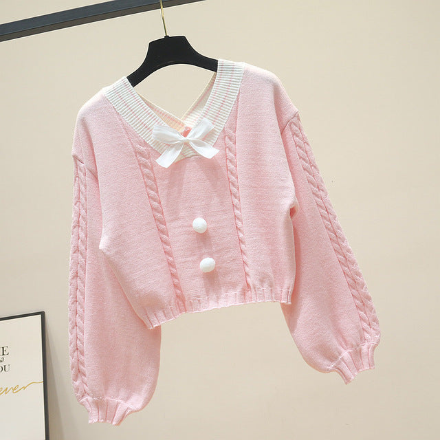 Kawaii Pullover Cropped Knitted Sweater