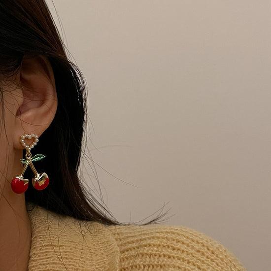Sweet Cherry Heart Earrings